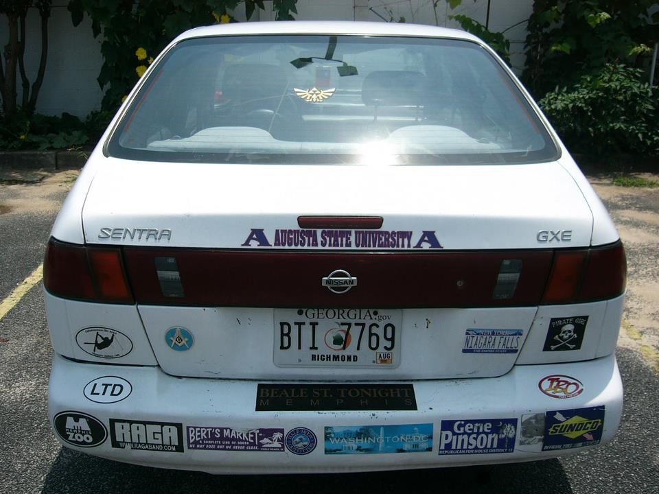 I love to put bumper stickers on Robert. He came with some stickers already, but I am always putting more. whenever I travel, I put a sticker on it, and I’ve been trying very hard to hold myself back on spending stickers money (Just now, I’m looking at a zelda bumper sticker, and I really really really want it.) In addition, I also enjoy turning the music up with my arm hanging out the window. You might say only guys do that, but I don’t see a problem doing that. I used to have DDR songs on a CD, but a few months ago I sold them. Now I’m switching between radio stations.